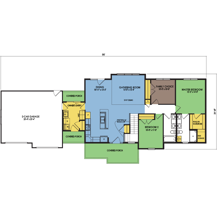 A part of our Vacation Series, the Amnicon floor plan features 2 bedrooms and 2 bathrooms with a foot print of 86x32 feet and 1551 total square feet of living space. Floor Plan #VC126