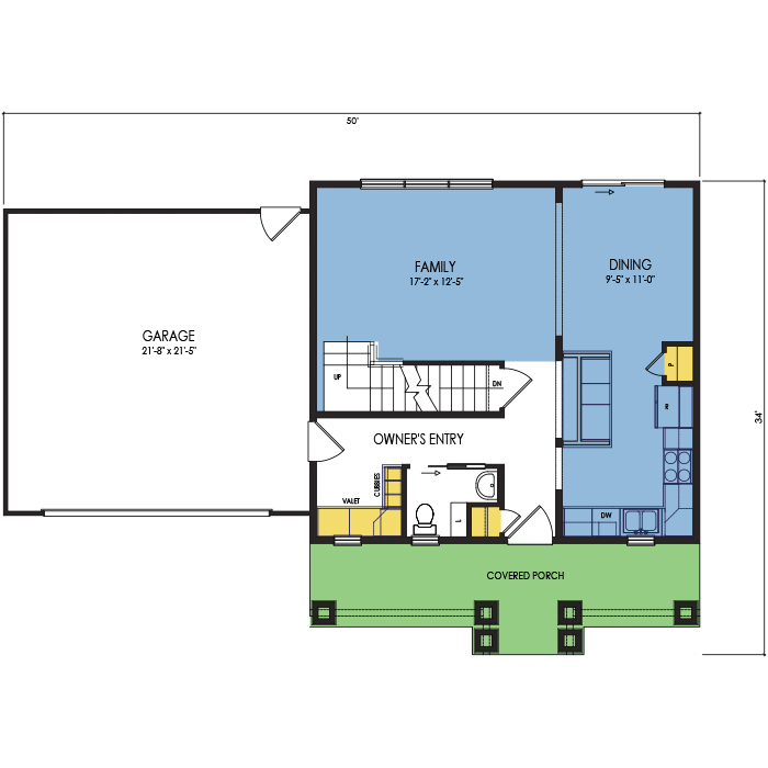 A part of our Dream Series, the Arbor Vitae 2 story floor plan features 3 bedrooms, 2.5 bathrooms, and a 2 car garage, with a footprint of 50x26 feet and 1436 total square feet of living space. Floor Plan #DR240