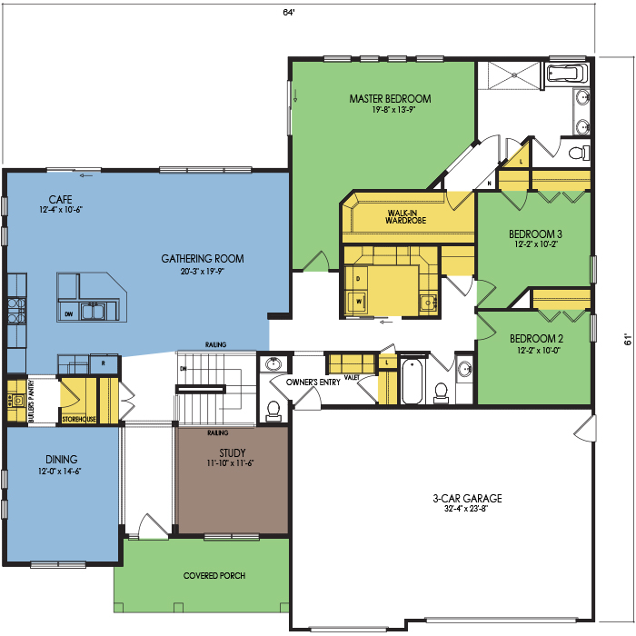 A part of our Resort Series, the Bastain floor plan features 3 bedrooms and 2.5 bathrooms with a foot print of 64x62 feet and 2539 total square feet of living space. Floor Plan #RT165