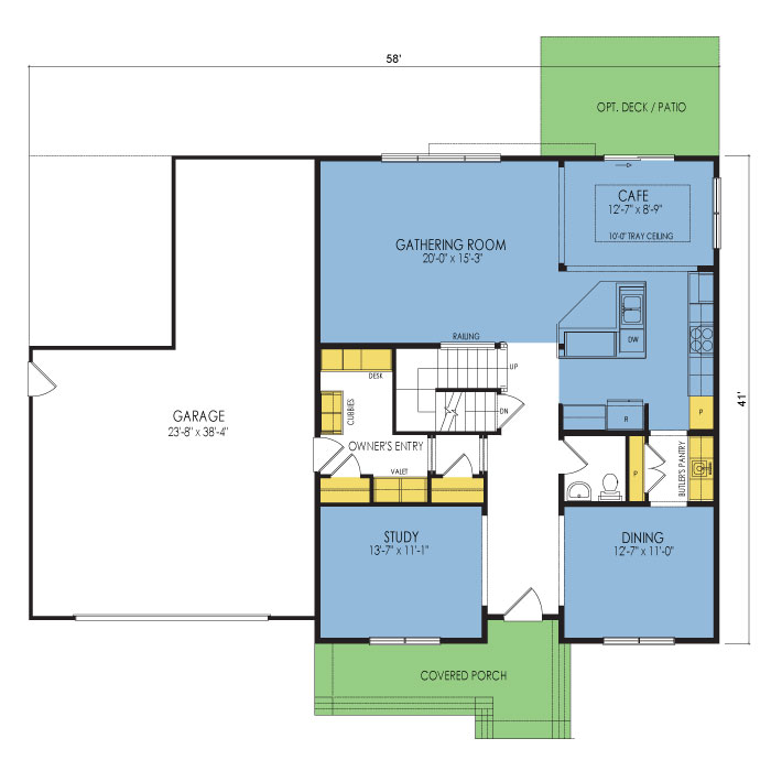 A part of our Designer Series, the Cypress Point floor plan features 4 bedrooms and 3.5 bathrooms, 2 stories, a 2-car garage, a footprint of 58x41 feet, and 2620 total square feet of living space. Floor Plan #DT236