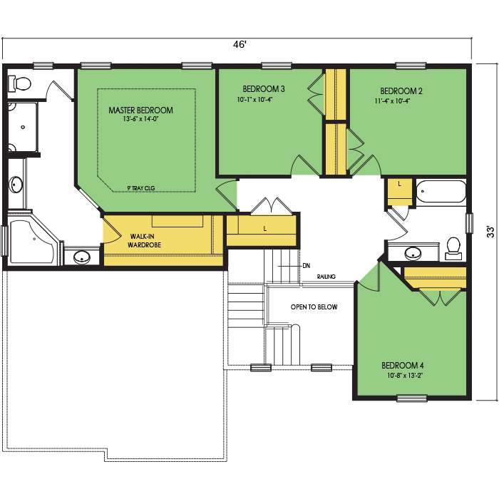 A part of our Family Series, the Glacier floor plan features 4 bedrooms and 2.5 bathrooms with a footprint of 46x40 feet and 2195 total square feet of living space. Floor Plan #FM239