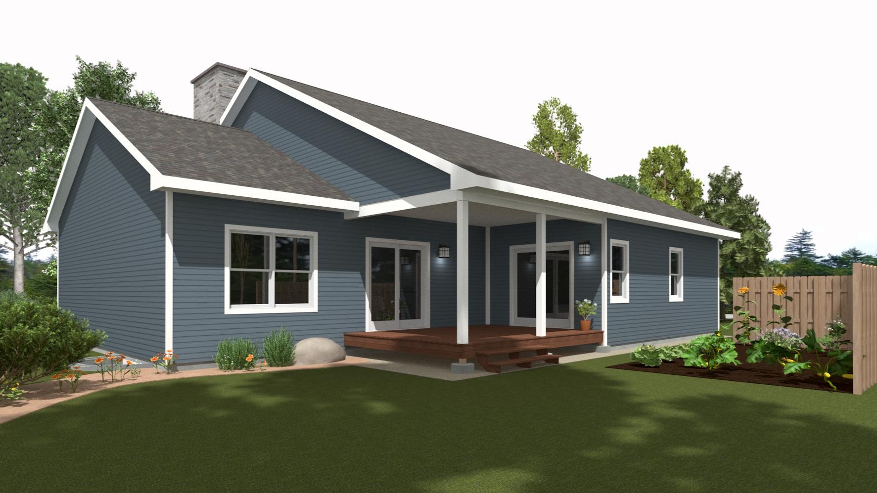 The 1550 sq. ft. of living space plus an additional 1120 sq. ft. of garage space fits neatly on a 72'x52' footprint, giving you design flexibility on city, suburban, or acreage lots.