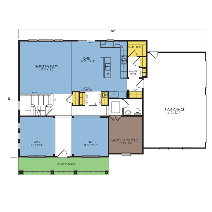 A part of our dream series, the tamarack floor plan features 3 bedrooms and 1.5 bathrooms with a foot print of 44x30 feet and 1342 total square feet of living space.