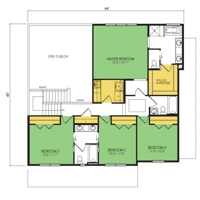 A part of our designer series, the quail hollow floor plan features 4 bedrooms and 3.5 bathrooms with a foot print of 64x40 feet and 2984 total square feet of living space. Floor Plan #DT282