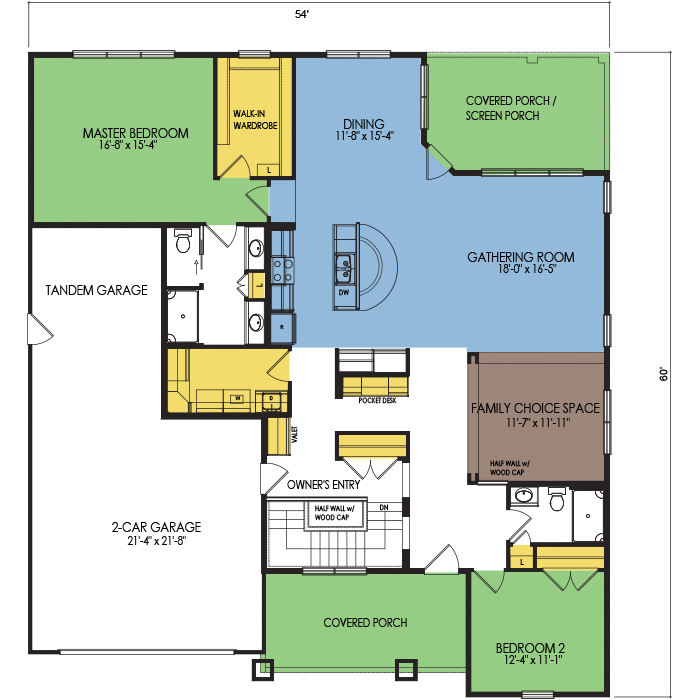 A part of our Resort Series, the Red Slate floor plan features 2 bedrooms and 2 bathrooms with a foot print of 54x56 feet and 2057 total square feet of living space. Floor Plan #RN143