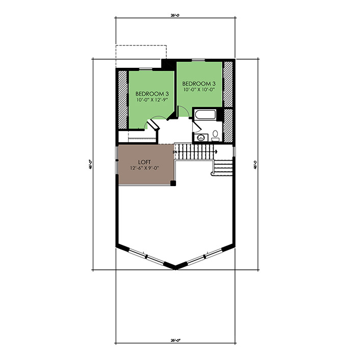 A part of our Vacation Series, the Rosalind floor plan features 3 bedrooms and 2.5 bathrooms with a foot print of 48x52 feet and 1714 total square feet of living space. Floor Plan #VL303