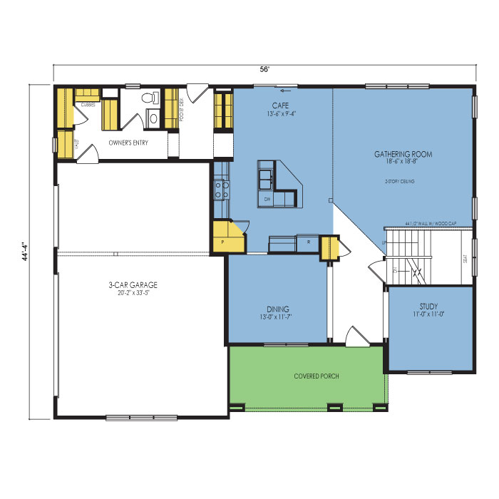 A part of our dream series, the tamarack floor plan features 3 bedrooms and 1.5 bathrooms with a foot print of 44x30 feet and 1342 total square feet of living space.