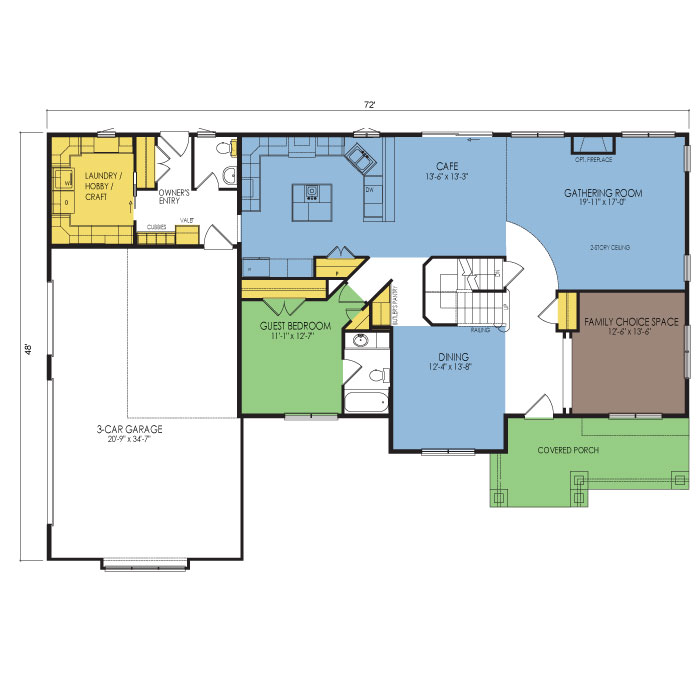 A part of our dream series, the tamarack floor plan features 3 bedrooms and 1.5 bathrooms with a foot print of 44x30 feet and 1342 total square feet of living space.