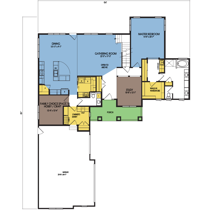 A part of our Resort Series, the Washburn floor plan features 3 bedrooms and 3.5 bathrooms with a foot print of 64x80 feet and 2810 total square feet of living space. Floor Plan #RN374